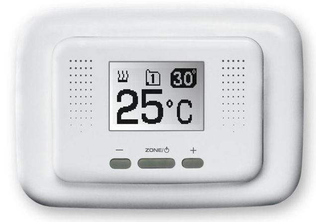 Двухзонный терморегулятор управляет двумя зонами обогрева одновременно (например, ванная – кухня) с индикацией температуры пола в каждом помещении.